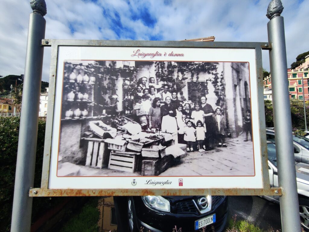 Un po’ dappertutto, sparsi per il borgo sia fronte mare che fra i caruggi, noterete i cartelli “Laigueglia è Donna” con foto in bianco e nero di donne del secolo passato. Questa iniziativa l’abbiamo trovata splendida. Il borgo ha voluto dare è un messaggio forte e chiaro di rispetto e impegno sociale contro la violenza di genere. Ci ha subito dato l’impressione di essere un borgo con una comunità accogliente e consapevole, fatto di bella gente.