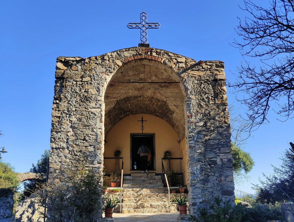 Lungo il sentiero, dopo la chiesa di Santa Croce, scopriamo un’altra chiesa, quella di Sant’Anna ai Monti. Di proprietà privata, ci hanno detto che è ormai sconsacrata. Le sue origini sono misteriose, ma molti sostengono che questa sia stata la prima chiesa edificata in territorio di Alassio. La trovate in posizione panoramica, affacciata sul mare e circondata da alberi di mirto.